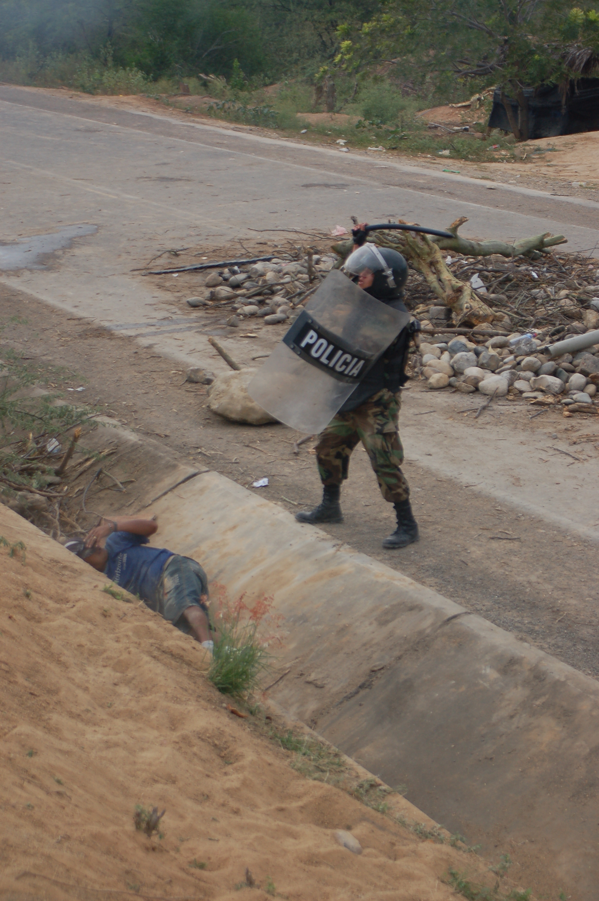 Agente de la DINOES y cuerpo de civil al lado de la carretera.