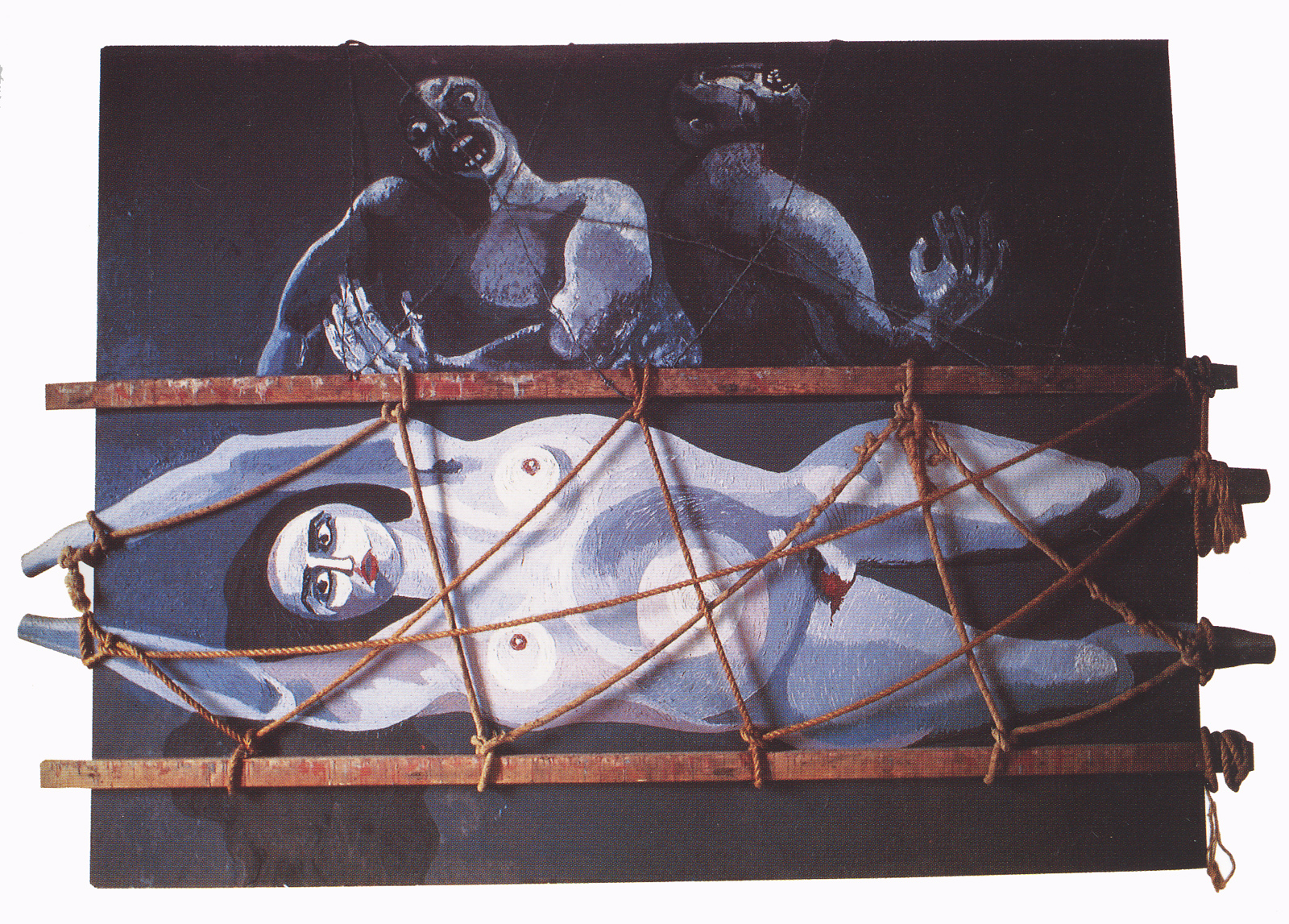 Óleo sobre madera, soga y alambre de púas